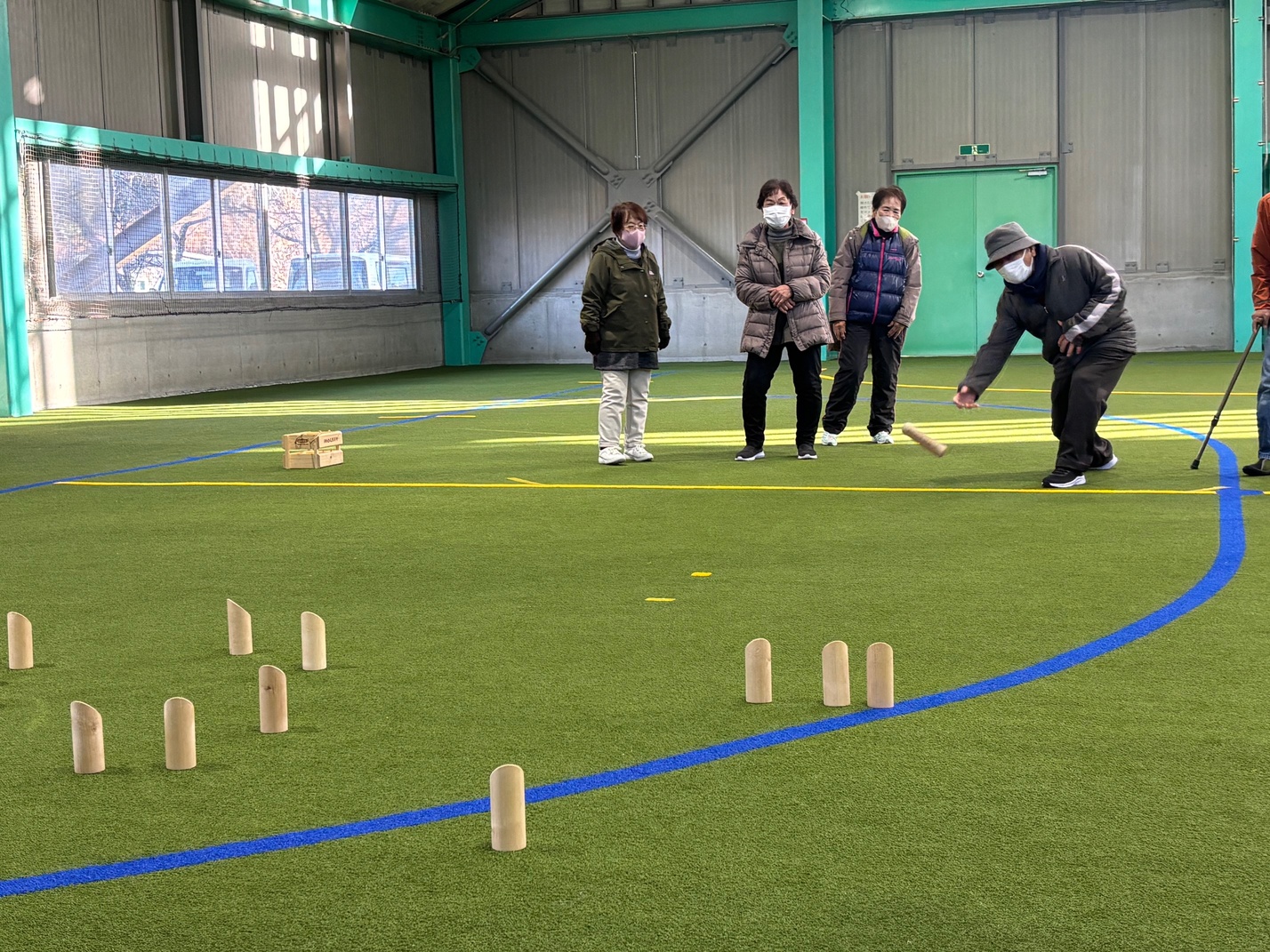 屋内でプレーできる囲碁ボールにより、適度に身体を動かし、冬場の運動不足解消を図
