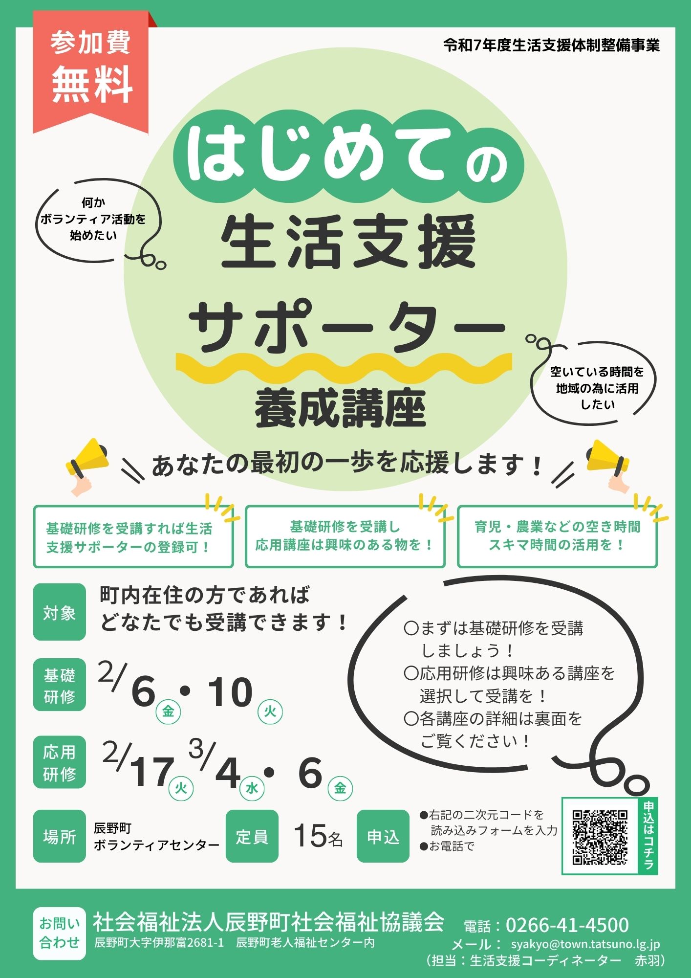 「令和7年度 生活支援サポーター養成講座」受講生募集!!
