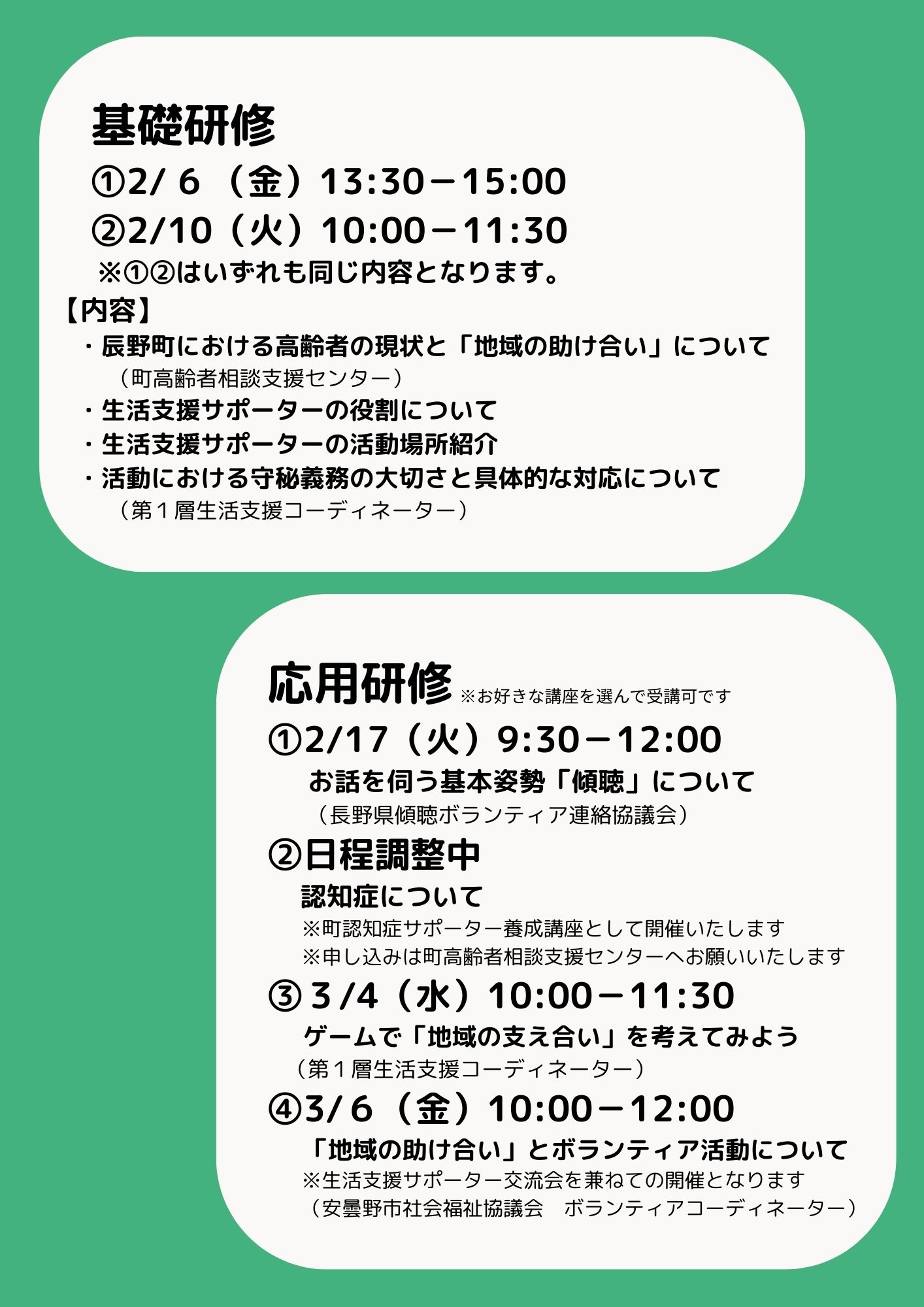○辰野町社会福祉協議会事業(☎0266-41-4500)